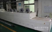2、外形尺寸(約):總長24000mm*總高1690mm*總寬1220mm,地面到網(wǎng)帶的高度為850mm,爐體內(nèi)進(jìn)料高度為150mm;烘干部分總長14000mm,分7段獨立控溫(每段4個測溫?zé)犭娕迹慷?000mm。冷卻段長4000mm,UV預(yù)留區(qū)長2000mm,前后緩沖區(qū)各長500mm,進(jìn)出料部分長1500mm, 爐體前后裝有急停開關(guān)。